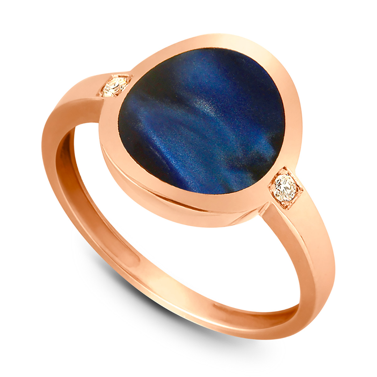 Bague au motif cercle résine bleu de Prusse galbé et ses diamants de chaque côté.