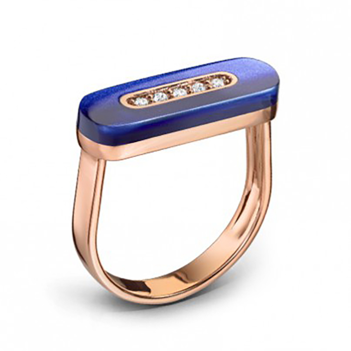 Cette bague au design fort et coloré qui obéit à la baguette et se plie aux désirs de cinq brillants à l’alignement parfait.