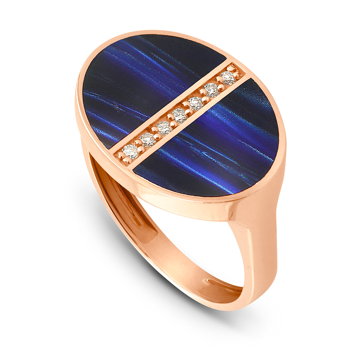 Bague avec sa résine nacrée bleu de Prusse et sa barrette de 7 Diamants en centrale