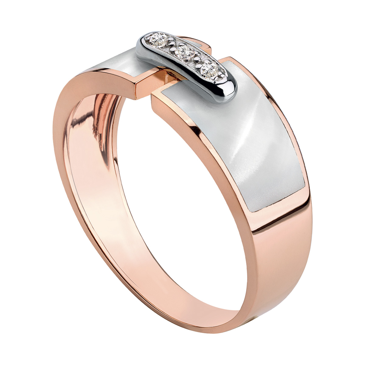 Bague résine nacrée blanche avec son lien en or gris avec 3 diamants