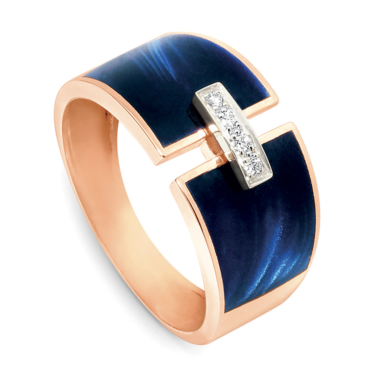 Bague grand modèle résine nacrée bleu de Prusse avec son lien en or gris avec ses diamants