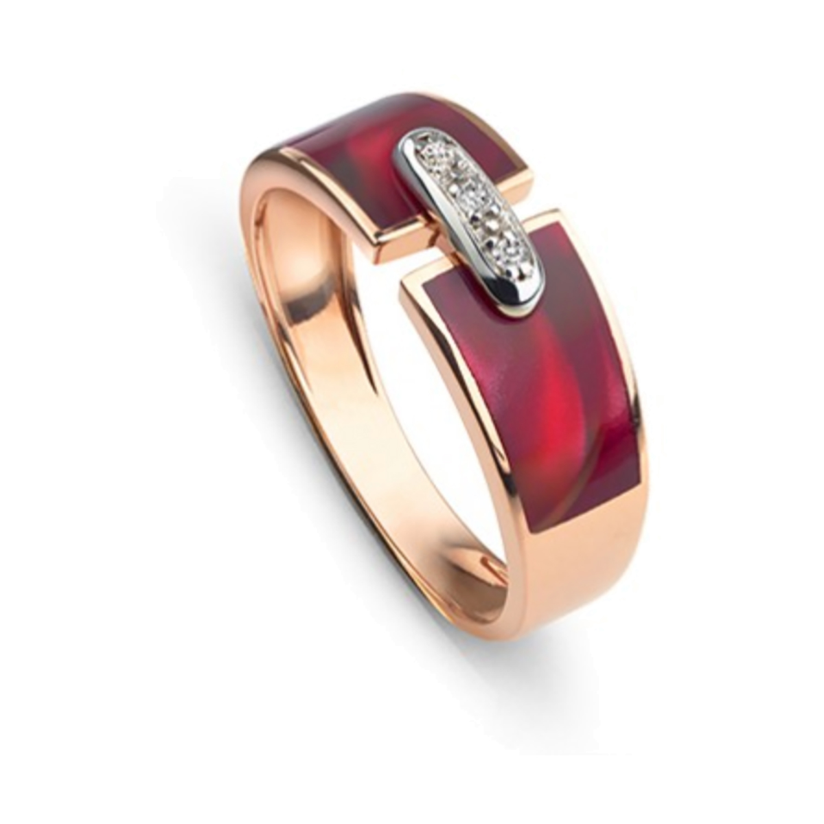 Bague diamants et résine nacrée rouge sur or rose