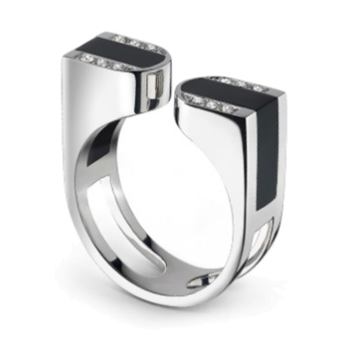Bague diamants et résine nacré noire sur or blanc
