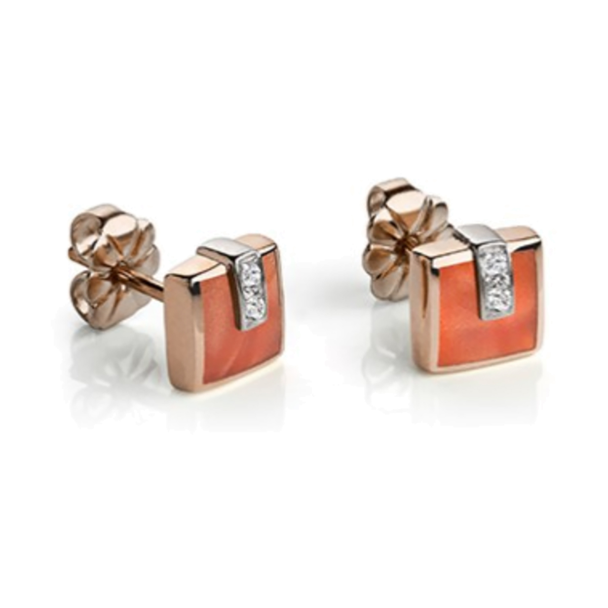 Boucles d’oreilles diamants et résine nacrée feu sur or rose
