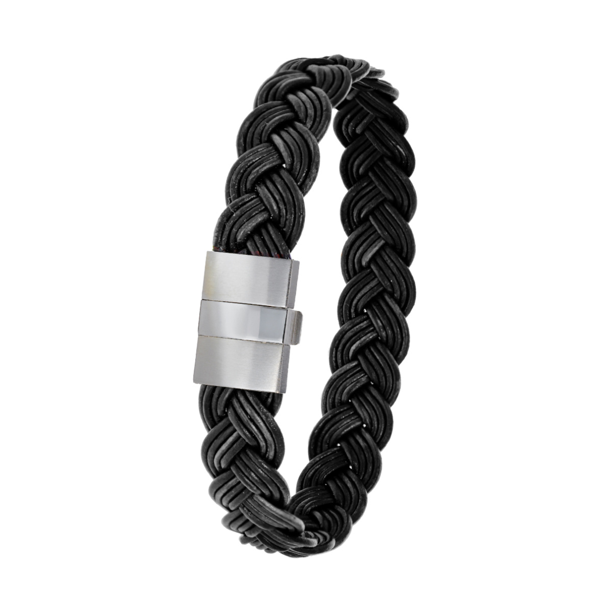 Bracelet Albanu en cuir tressé et son fermoir 604 acier mat 12 mm.