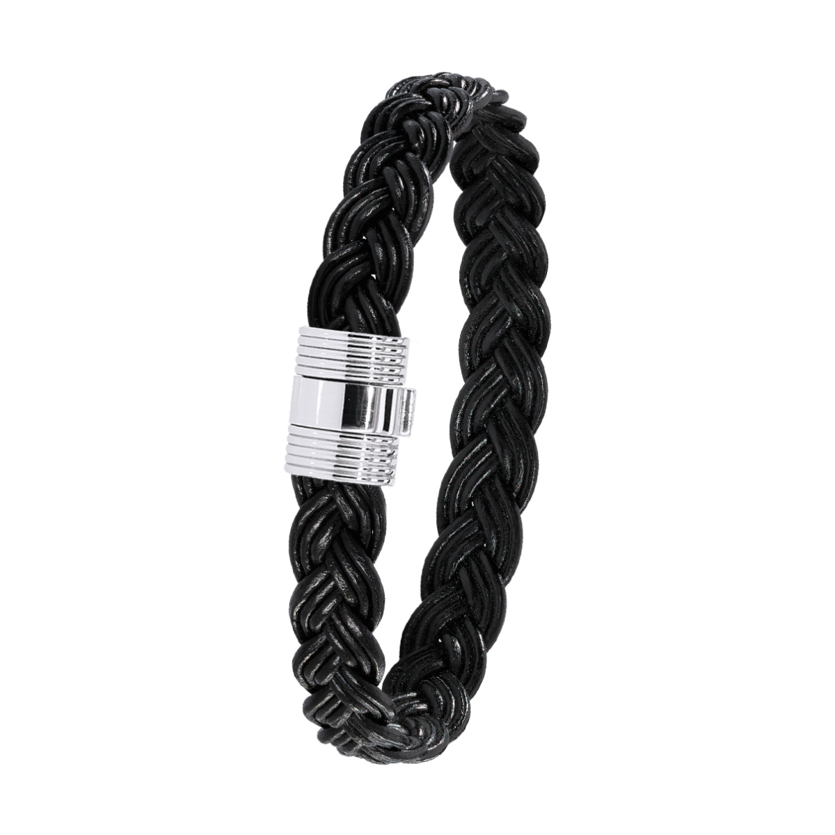 Bracelet Albanu en cuir tressé et son fermoir 606 acier mat, 9 mm.
