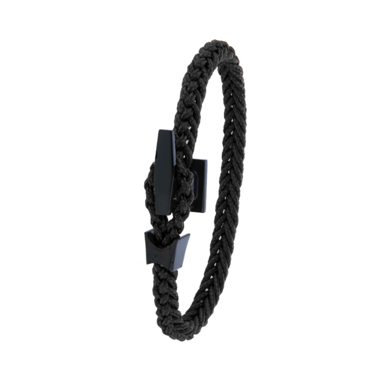 Bracelet Albanu en cordon marin tressé et son fermoir Taquet acier PVD noir.