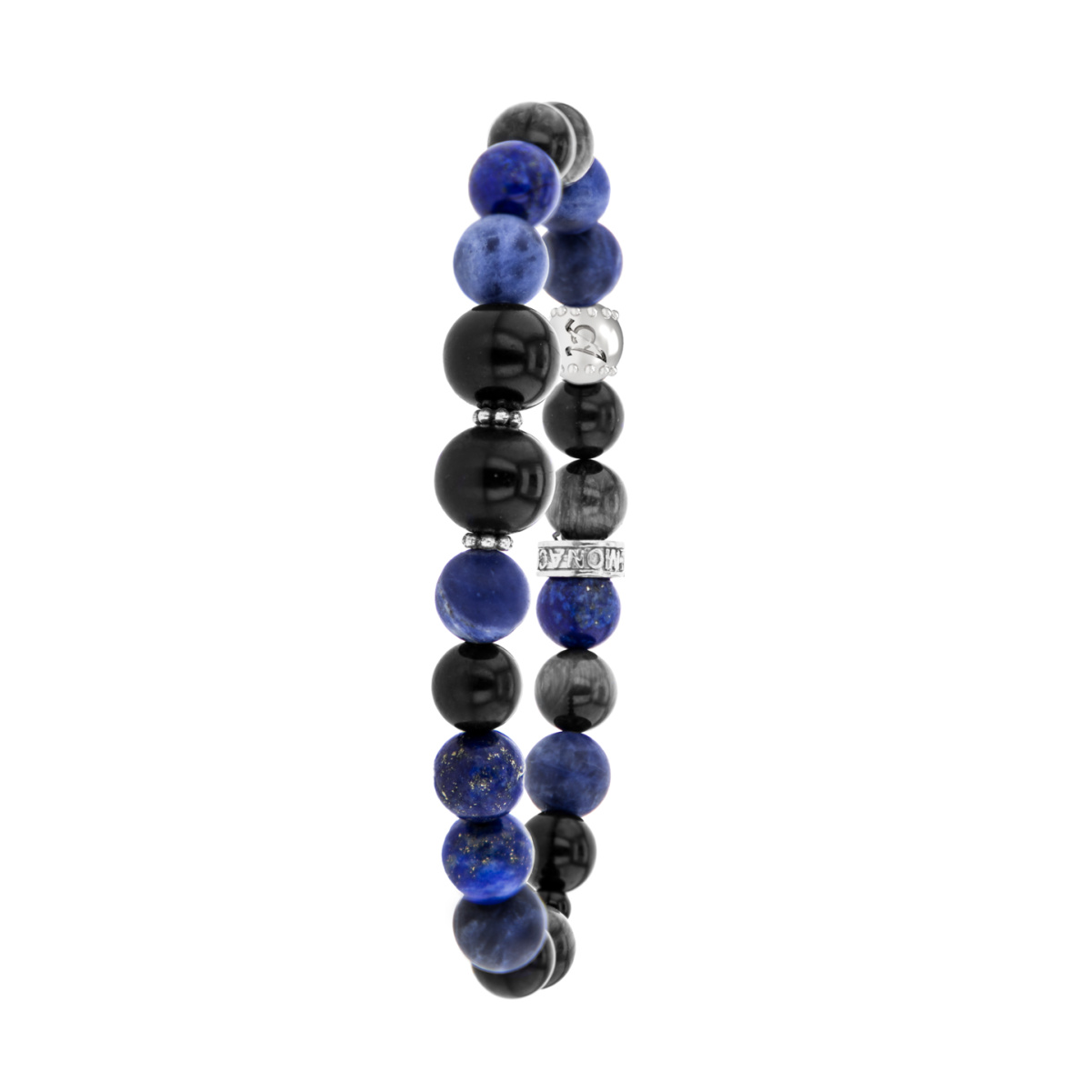 Ce bracelet pour homme Mintaka de la marque Albanu est réalisé à partir de pierres Oeil de Faucon, Taureau, Onyx & Lapis Lazuli et il contient 0,9g d’argent.