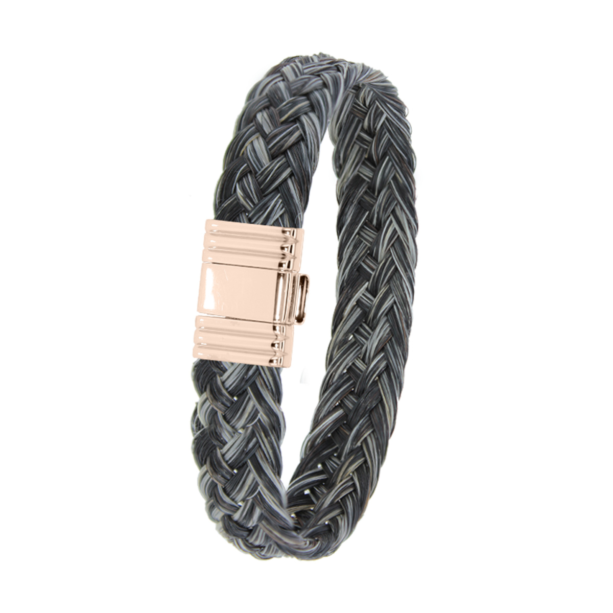 Ce bracelet pour homme Sorraïa est un bracelet tressé en crin de cheval avec un fermoir en Acier PVD rose.