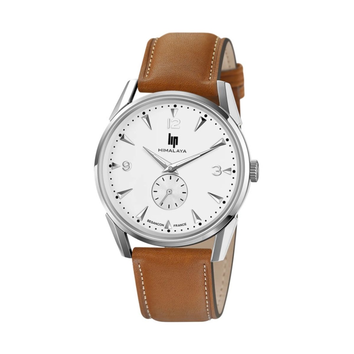 Prix de vente conseilléMontre Lip Himalaya, cadran blanc et boitier argenté, aiguilles et index également argentés.